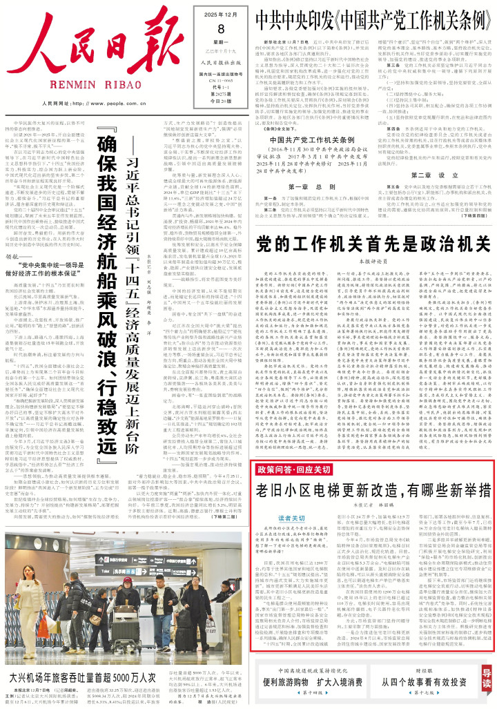 一是合力推进住宅老旧电梯更新改造。2024年8月以来,市场监管总局会同住房城乡建设部、国家发展改革委等部门,部署各地组织申报、信息复核、资金下达等工作;截至今年7月,已将16万余台住宅老旧电梯纳入超长期特别国债资金补助范围。